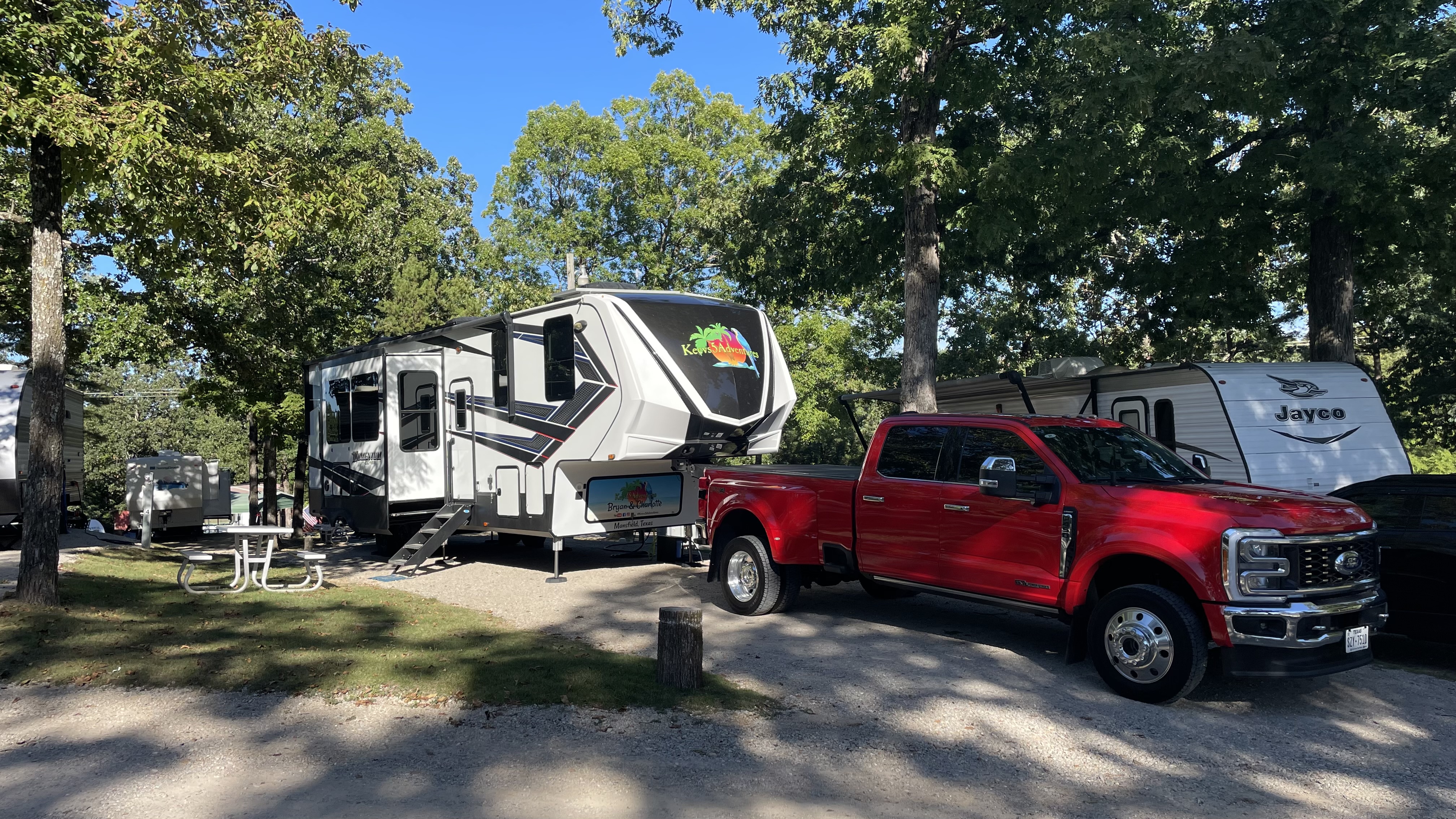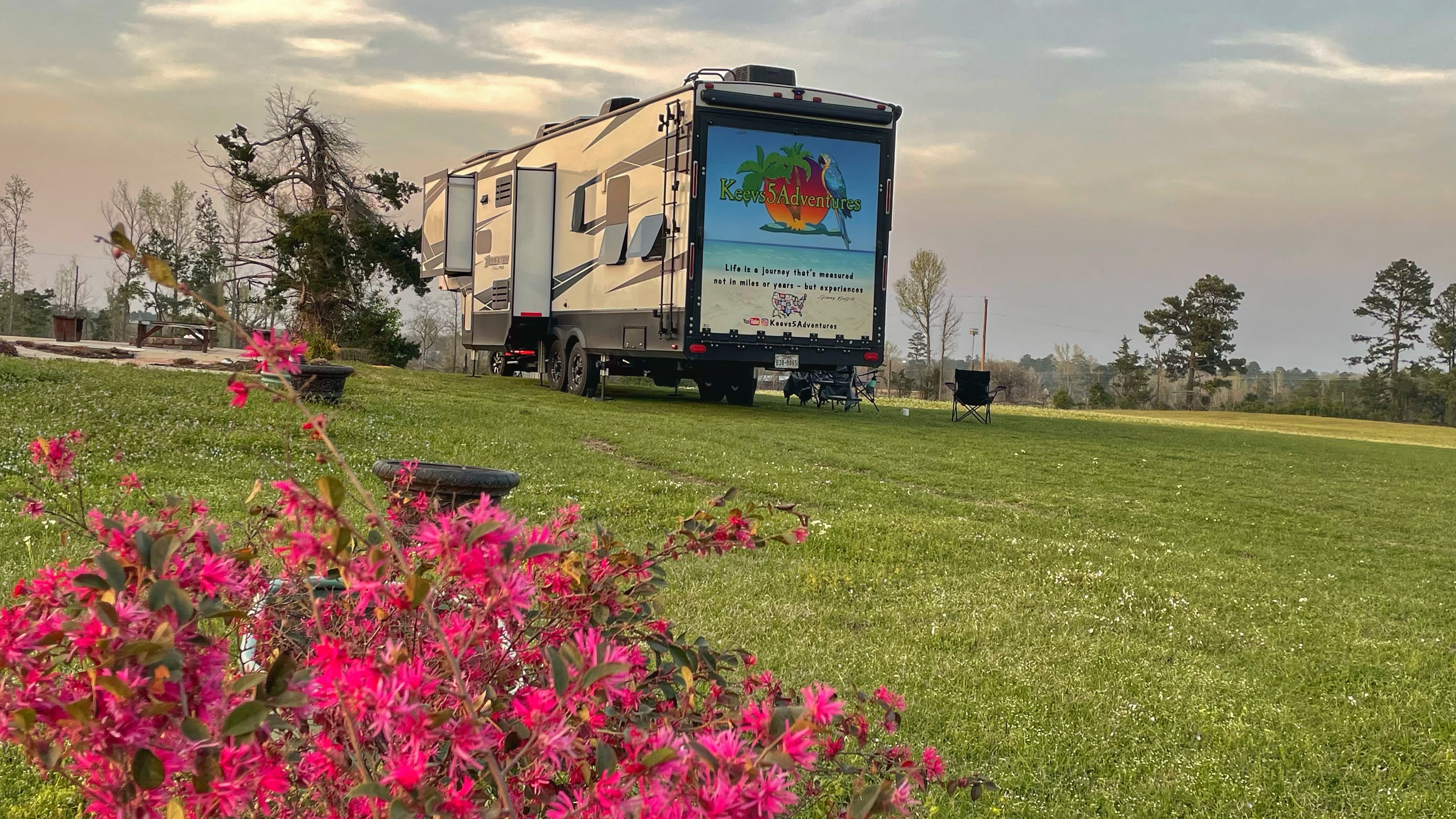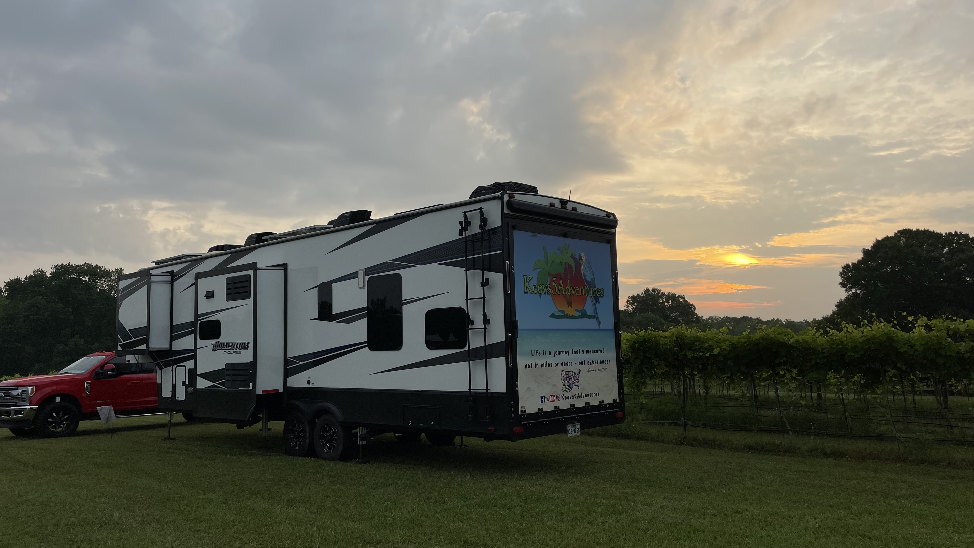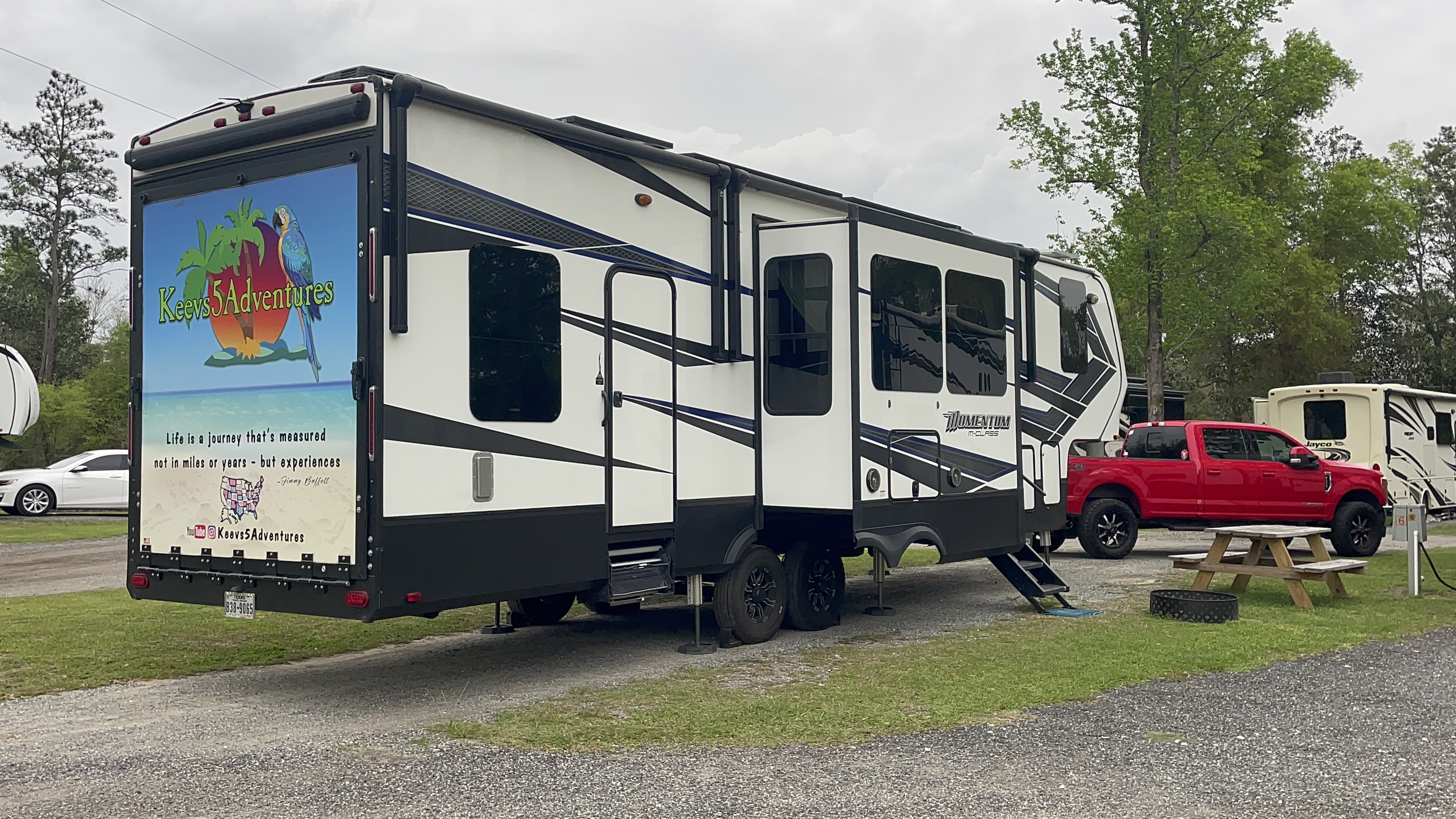 We attended two rallies, took our RV on a ferry, and took our RV off-road! We raised thousands of dollars for our favorite charity and had the CEO of Grand Design, Don Clark, visit our tiki hut! We toured the remaining 3 National Parks, accomplishing the “Mighty Five”! We checked off “RVing to the Florida Keys” on our bucket list! We traded in our truck for a brand-new dually! We gave our RV a facelift by removing the front decal, adding our logo, and giving it red pin-striping as well!